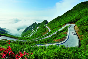 45道拐是平川公路的一段,连接洪安古镇和川河盖景区。此段公路全长10 公里,海拔从625 米骤升到1